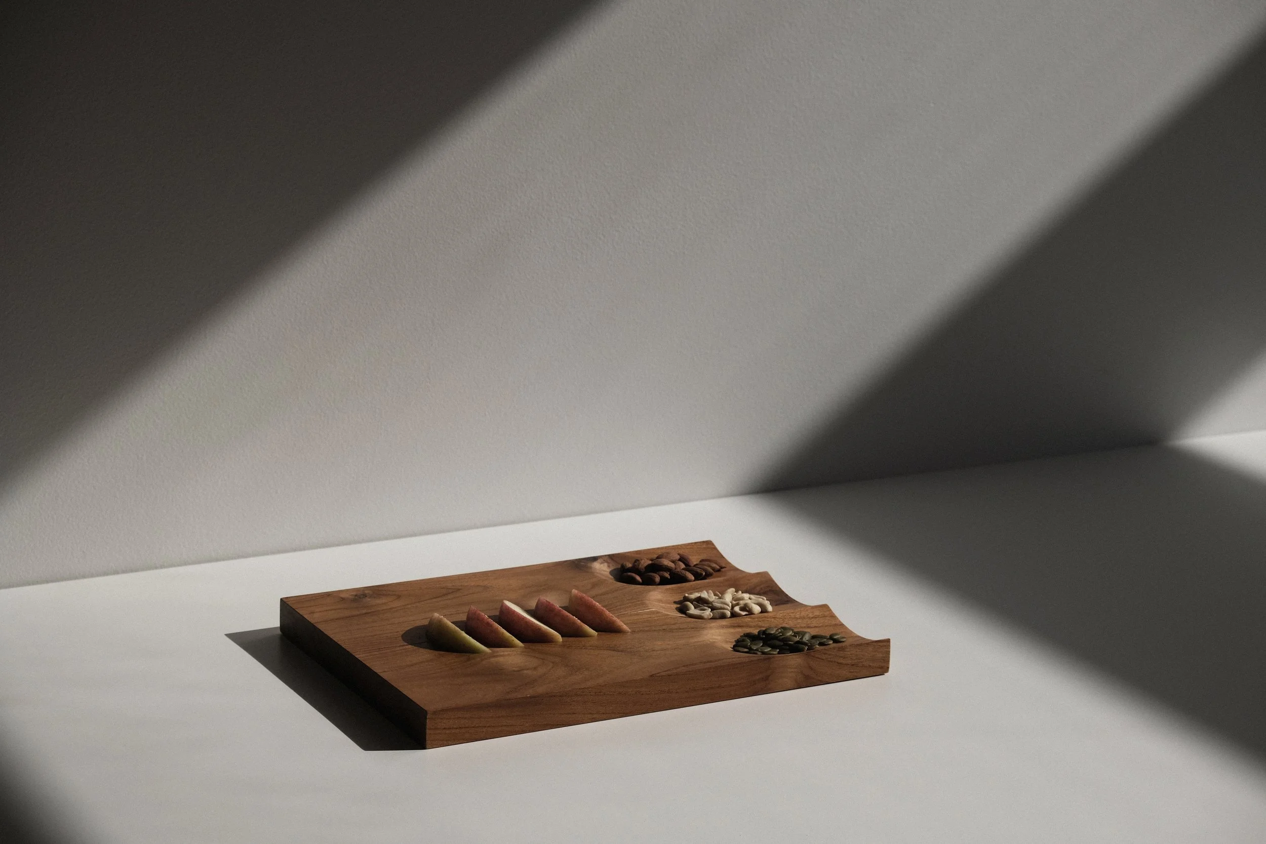 Crafted out of solid acacia, these objects are designed to embrace everyday wear and tear and the natural patina that will form over time, while the hardwood’s properties make them resistant to moisture damage and bacteria. Each piece exhibits subtle gestures to improve the function of these daily objects; whether it’s the way we cool down our toast, chop and segregate our ingredients, or how we carry and display our items.