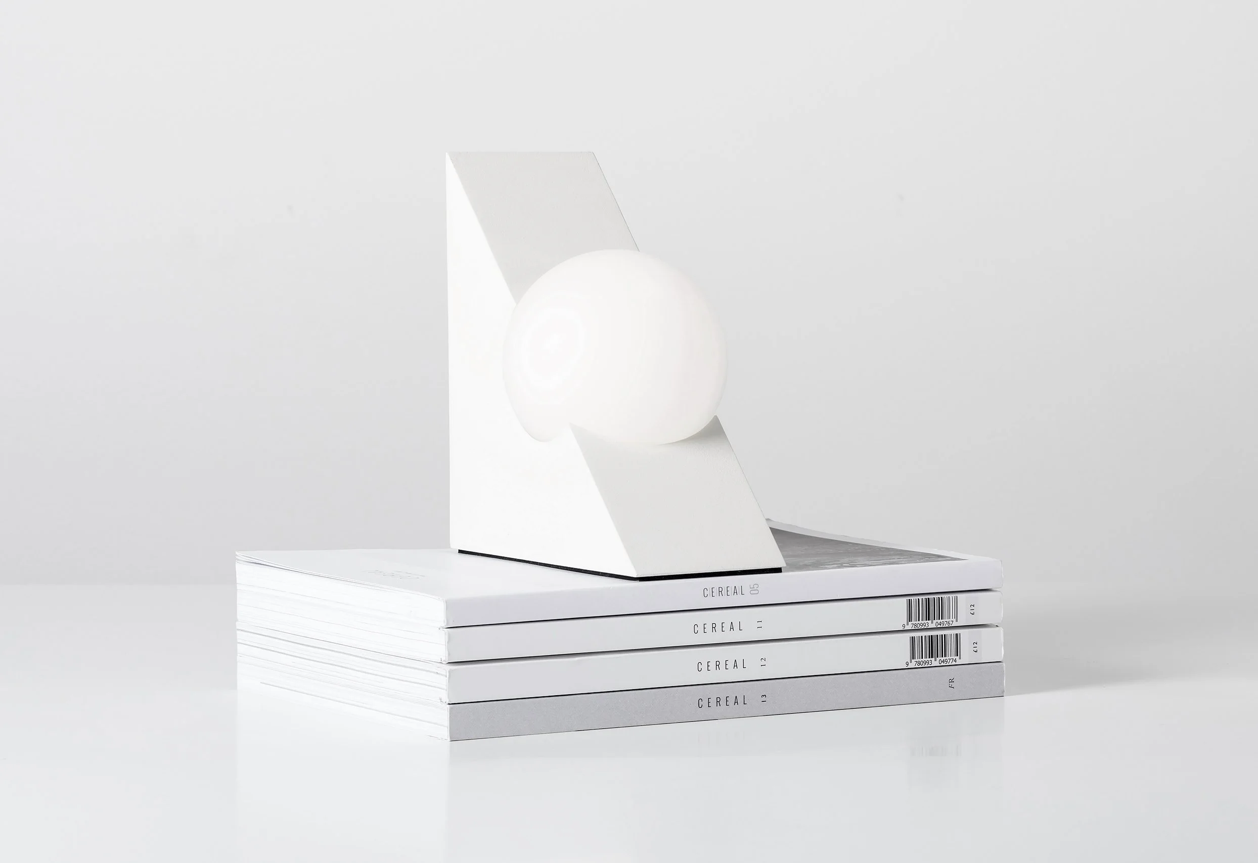 The light source was designed to be of a spherical nature in order to bring a soft, ambient glow to its surroundings, creating enough gentle light to enhance the ambience of a space, or to perform as subtle task lighting. Each object is crafted out of cast aluminium and a gently frosted glass sphere.